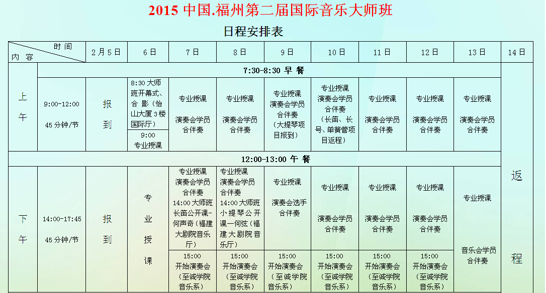 2015中国福州国际音乐讲堂日程表