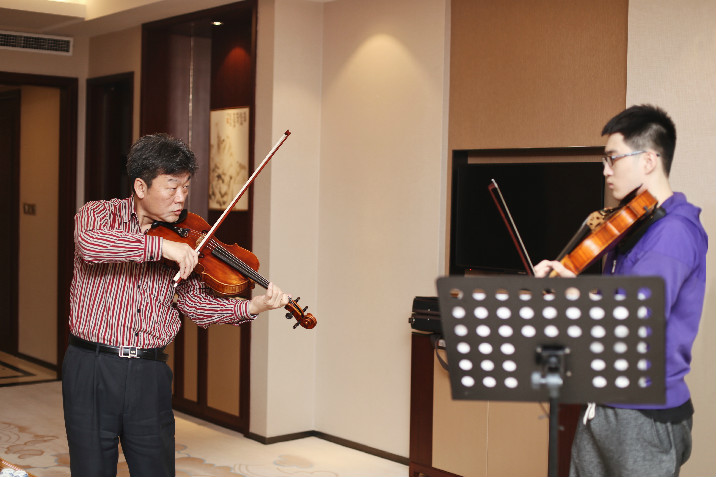 下午安排的是室内乐合奏课,各学员每人有3分钟的演奏,根据学员程度与水平进行分组。多样化的弦乐合奏课很容易就调动起学员们的兴趣和积极性,曲目内容得以增多,学员们所了解的知识面和视野也得到了拓宽,同时又培养了学员之间的协作精神。